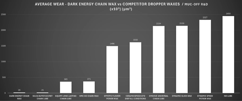 Dark Energy voksen er udviklet med den nørdede Muc-Off tilgang og udviklingen har taget mere end 4 år med tests, udvikling, tests, udvikling, tests, udvikling og du har vist fanget billedet. Test af Dark Energy voksen er udført i laboratoriet hos Muc-Off, blandt testpersoner hos Muc-Off og med de Muc-Off sponserede, professionelle cykelhold. Resultatet er en voks;